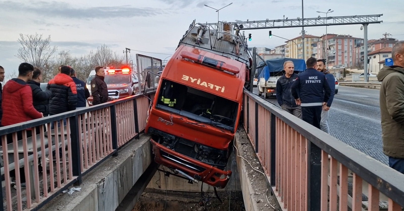 Olay, akşam saatlerinde Kırıkkale–Kayseri kara yolu üzerindeki Bağdat Köprüsü mevkisinde meydana geldi. M.E.’nin kullandığı 06 DH 2895 plakalı itfaiye aracı, ilerlediği sırada aniden patlayan lastik nedeniyle savruldu. Kontrolden çıkan araç, demir korkulukları aşarak iki köprü arasındaki boşluğa sıkışarak durabildi.